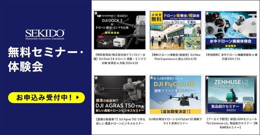セキドでは、より多くの事業者の方にドローンを使った業務効率の改善を実現していただくため、業務用ドローンや関連ソリューションをご紹介する無料セミナーやイベントを定期的に開催しております。今後もオンラインや全国各地での開催を予定しておりますので、ご興味をお持ちのイベントにはぜひお気軽にご参加ください。