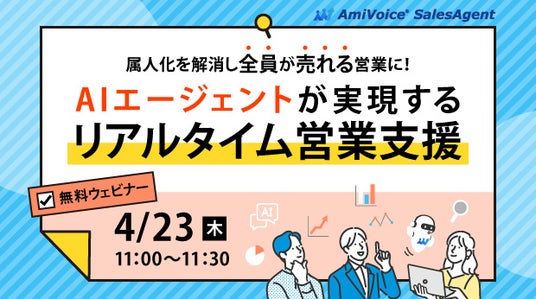 株式会社アドバンスト・メディア(本社:東京都豊島区、代表取締役会長兼社長:鈴木清幸 以下、アドバンスト・メディア)は、国内シェアNo.1※1のAI音声認識AmiVoiceと生成AI、感情解析を活用し、商談をリアルタイムで支援するソリューション「AmiVoice SalesAgent(アミボイス セールスエージェント)」を、正式リリースしました。商談の質向上・平準化により営業組織全体の強化を実現し、営業成果の最大化を支援します。