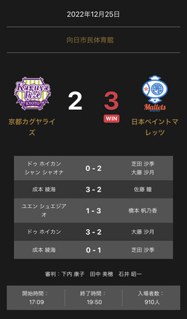 2022-12-26 一般社団法人Tリーグ ノジマTリーグ 2022-2023シーズン 公式戦 12月25日開催 京都カグヤライズ vs 日本ペイントマレッツ 試合結果 Tweet ノジマTリーグ 2022-2023シーズン 公式戦 12月25日に向日市民体育館(京都府)にて開催された京都カグヤライズと日本ペイントマレッツの試合は、 3-2で日本ペイントマレッツが勝利しました。 企業プレスリリース詳細へ PR TIMESトップへ 公式ツイッター Follow @Straightpress 最新情報をTwitterで受け取ろう! 公式フェイスブックページ 最新情報をFacebookで受け取ろう! 前の記事 一覧へ戻る 次の記事