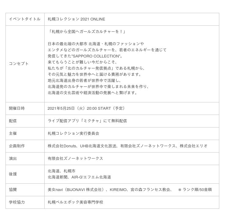 『札幌コレクション 2021 ONLINE』開催概要