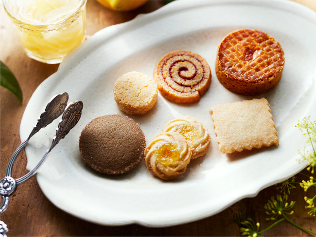 新作のオレンジピール入りのガレット・ブルトンヌや、ココナッツとレモンコンフィチュールを合わせた〈ココ・シトロン〉、アールグレイが香る〈ディアマン・オ・テ〉、粗糖でコクを引き出した〈サブレ・オランジェ〉、レモンとバニラが香る〈バニラ・シトロン カレ〉、定番人気の〈フランボワーズ〉の 6 種のクッキーが、淡いシトロンカラーのオリジナル缶に詰まっています。 通常のクッキー缶では味わえない限定のクッキーもたくさん入った贅沢なおいしさです。