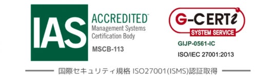 国際セキュリティ規格 ISO27001認証取得済