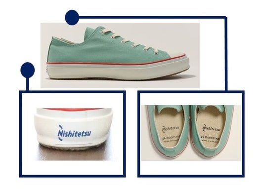 本企画の目玉として、西鉄沿線の久留米市に本社・工場を構える株式会社ムーンスターと当社がコラボレーションした「アイスグリーン色」のオリジナルスニーカーを先着500足限定で販売します。アイスグリーンのアッパーにボンレッドのラインが施されており、インソールには西鉄とムーンスターのロゴが印刷された限定品で、本年5月2日(金)よりWEB限定で予約を開始します。
