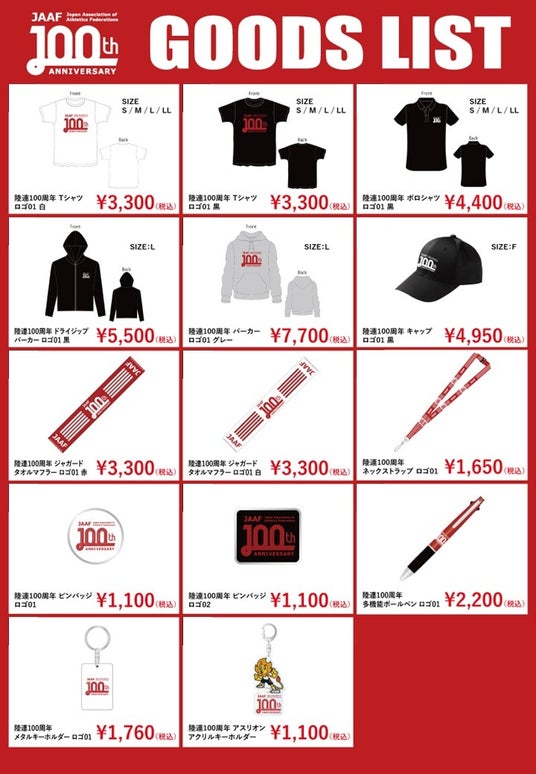 昨年11月29日(土)に開催いたしました「~日本陸連100周年記念~RIKUJOフェスティバル in 国立競技場」内で販売した100周年記念グッズ。