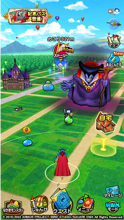 ※ 『ドラゴンクエストウォーク』は安全に遊んで頂くための機能「ウォークモード」を搭載しております。「ウォークモード」に設定することでスマートフォンの画面を操作しなくても、周囲のモンスターと自動的にオートバトルが実行されます。また、モンスターとのバトル以外にも、近づいたかいふくスポットにも自動で触れるため、HPやMPの回復も自動的に行われます。