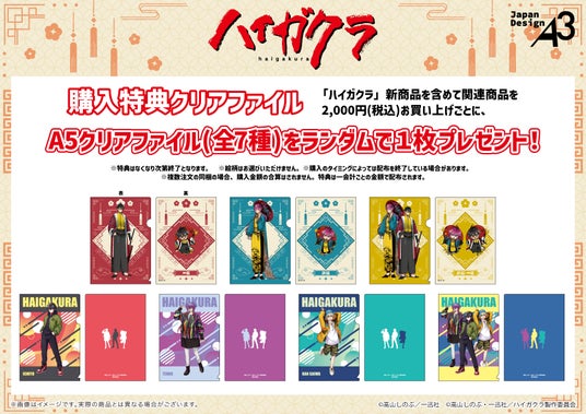 『ハイガクラ』新商品を含めて関連商品を1会計で2,000円(税込)お買い上げごとに、A5クリアファイル(全7種)をランダムで1枚プレゼント!