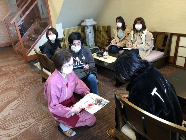 2022年3月19日(土)から3月31日(木)まで各店舗を回ってオリジナルポストカードや景品がゲットできる『キャラ巡りスタンプラリー』が開催され、スタンプラリー台紙も学生が制作しました。『四季の宿みのや』のおかみさんからは「イベント初日から多くの観光客がスタンプラリーに参加していました。開店前から並んで参加する方もいて、こんなに反響があるのかと驚きました。」と期待を上回る声がありました。また、スタンプラリーとは知らずにSNSでキャラクターを見て店舗に足を運んだ方などもいたとのことです。