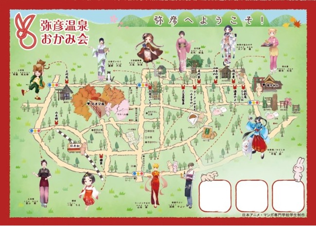 NSGグループの日本アニメ・マンガ専門学校の学生は新潟県の弥彦村温泉街への若年層集客のために、旅館や商店のおかみらでつくる「弥彦おかみ会」の11店舗をイメージした擬人化キャラクターを制作しました。2022年3月19日(土)~3月31日(木)まで各店舗を回ってオリジナルポストカードや景品がゲットできる『キャラ巡りスタンプラリー』を開催いたします。