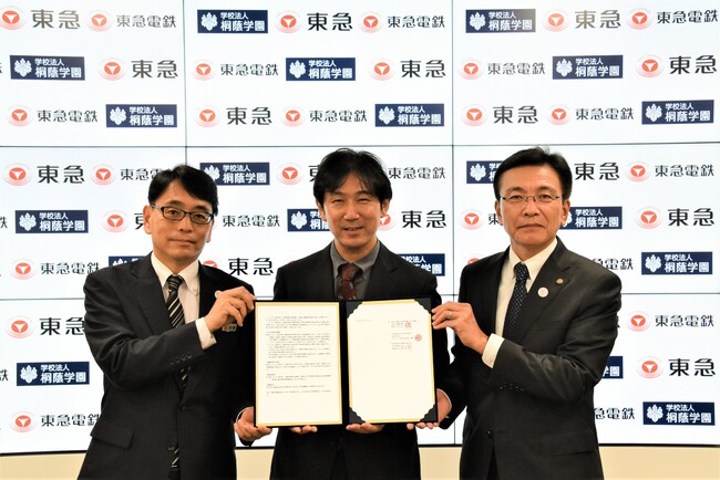 学校法人桐蔭学園(神奈川県横浜市青葉区、理事長:溝上慎一、以下「桐蔭学園」)、東急株式会社(本社:東京都渋谷区、取締役社長:高橋和夫、以下「東急」)、東急電鉄株式会社(本社:東京都渋谷区、取締役社長:福田誠一、以下「東急電鉄」)は、2022年10月12日に「教育」と「エネルギー」をテーマにした相互連携に関する協定書を締結しました。今後、「学びの場の創出」、「ペロブスカイト太陽電池の実証」を三者が連携して行い、多摩田園都市エリアにおけるまちづくりを推進していきます。