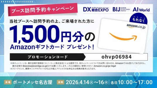 ブース予約でAmazonギフトカード1,500円分進呈!