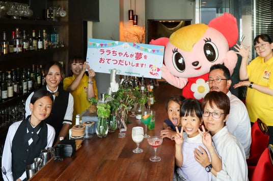 株式会社イオンファンタジー(代表取締役社長:藤原徳也、所在地:千葉県千葉市、以下、当社)は、モーリーファンタジーのキャラクター“ララちゃん”が夢を叶えるおてつだいをする企画 「ララゆめ ~ララちゃんが夢をおてつだいします!~」で2,677件の応募の中から選ばれた、長野県上田市在住のさつきちゃん(10歳)の 「バーテンダーになって家族にオリジナルドリンクをつくりたい。」 という夢を8月3日(土)に上田市のダイニングバーにて、世界大会でもご活躍の上田市出身のフレアバーテンダー・熊代綾子さんにご協力いただき叶えました。