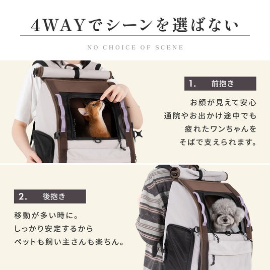 安定感と快適性を両立したマルチスタイルペットキャリーが誕生。前抱き・後抱き・キャリーオン・手持ちの4WAY仕様で、愛犬・愛猫との時間をより安心で快適に。シンプルでおしゃれ、暮らしに馴染むデザインです