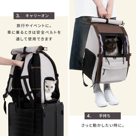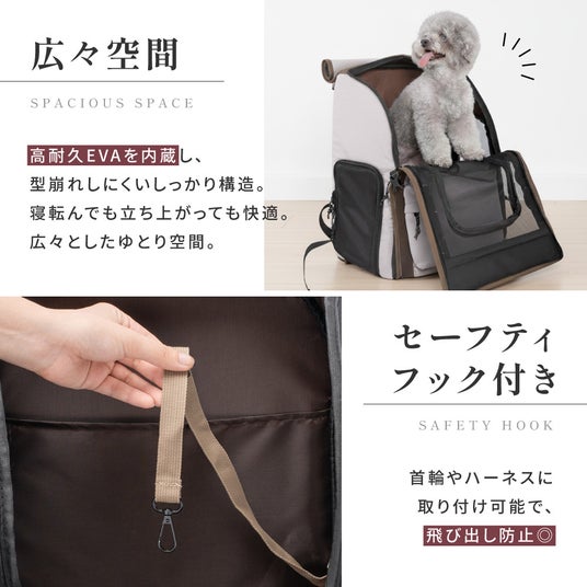 日常のお散歩から旅行、通院まで、さまざまなシーンに対応できる多機能キャリー。