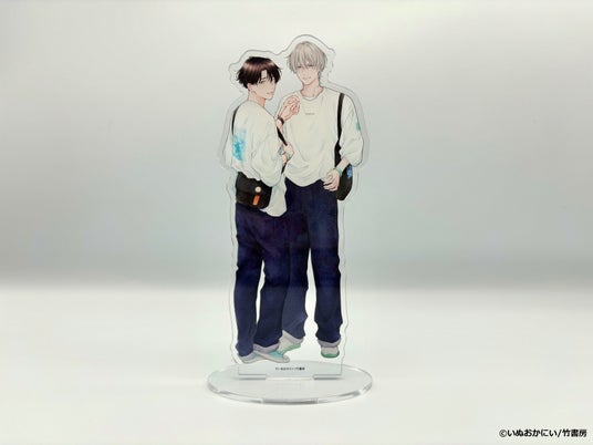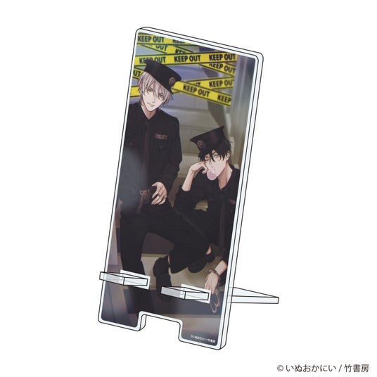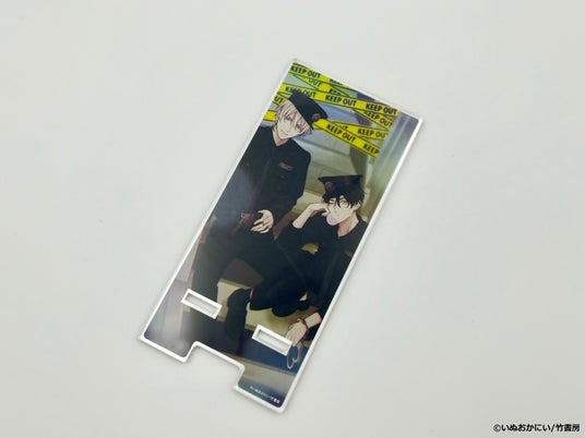 珍しくちょいワルな2人にドキッ! プレートと台座を組み合わせて使う、約15cm×7cmのアクリルスマホスタンドです。