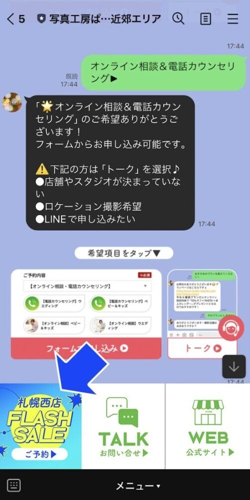 ご都合の良い時間が合わない/まとまった時間が取れない方へは、LINEのみで完結する決済方法を完備。「西店フラセ希望」でトークを送信することで、上記キャンペーンを受け取ることができます。