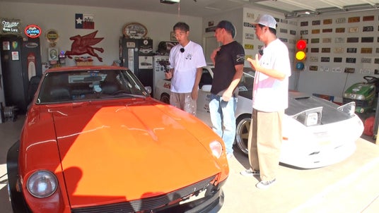 一行はスティーブさんの自宅へ。2つの大きなガレージには、多くの日本旧車が…。まずは日産 フェアレディZ。おぎやはぎはそのぶっ飛んだカスタムに目を奪われる。そしてサバンナ RX-7には、息子との一生忘れられない思い出があるといい…。