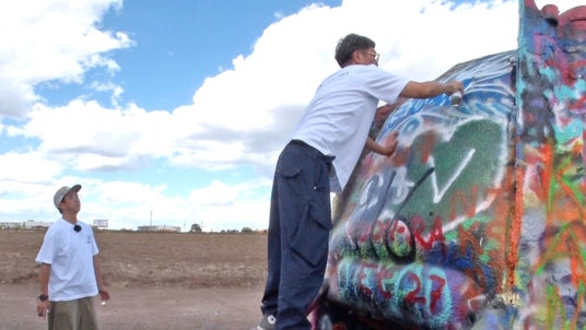 旅の最終目的地は、ルート66沿いにある、あるクルマをモチーフにしたアート作品が並ぶ地。訪れた証を刻みつつ、2人は番組のさらなる発展を願うのであった。