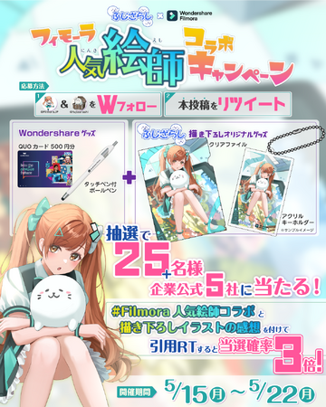 ここでしか手に入らない『ふじざらしさん描き下ろし』オリジナルグッズを抽選でプレゼント!また、pixivにてイラストコンテスト、公式サイトにてFilmoraメイキング動画コンテストも同時開催中!(締切:5月20日まで)