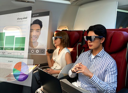 グラスのツルの部分にはスーパーリニアスピーカーを搭載し、映画のようなオーディオ体験を提供しながら、先進的な音響位相キャンセル技術で効果的に音漏れを防ぎ、プライベートなリスニングを実現します。