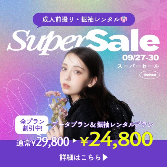 写真工房ぱれっと(本社/有限会社三景スタジオ)にて成人式前撮り、成人式振袖レンタルの"スーパーセール"を開催。ご成人のお客様を対象としたスーパーセールは初の取り組みとなっております。