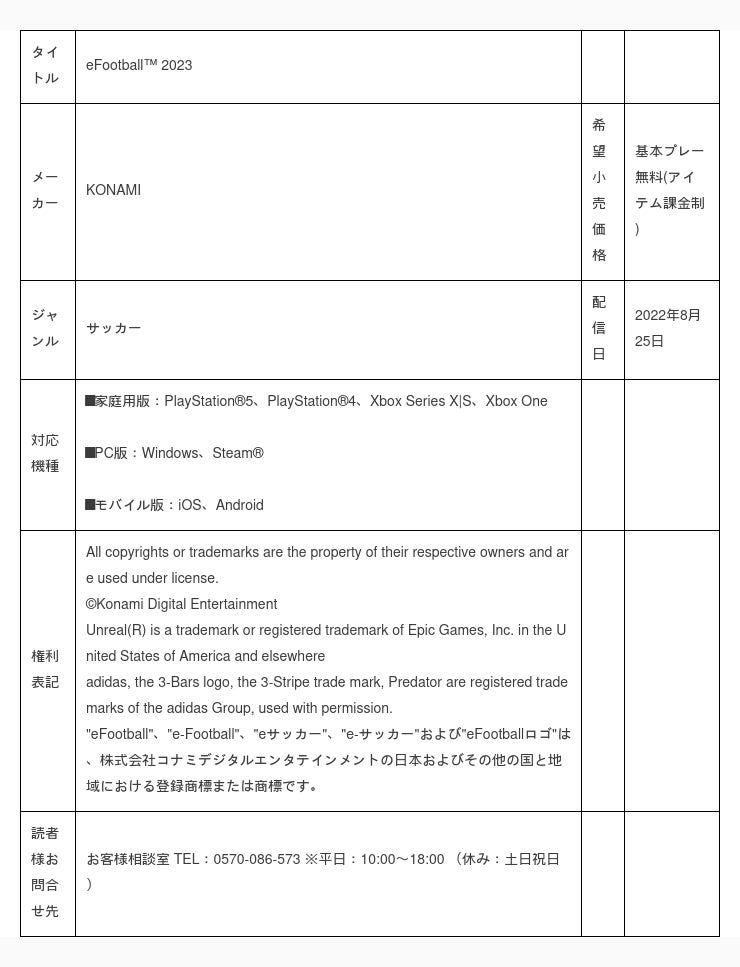 更なる進化を続ける「eFootball(TM)」にご期待ください。