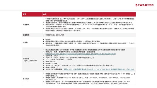 しかしながら、欧州等のサッカークラブの事例からファン・サポーターの移動に伴う排出の影響は大きいため、昨年末に移動に関するアンケート調査を実施し、2025シーズンのホームゲームにおけるファン・サポーターの移動に伴う排出を以下のとおり算定いたしました。
