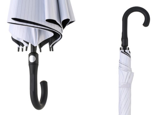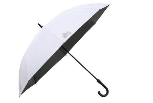 開いた時の直径は約130cm、骨長約150cmの大型サイズ。日射しや雨からしっかり守ってくれるので、屋外でのスポーツ観戦やゴルフなどにぴったり。白をベースにしたシンプルなデザインなので、ユニセックスで性別を選ばない。