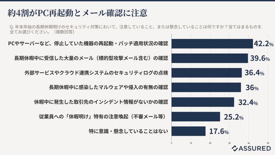 ~7割が休暇中のセキュリティ体制に不安、取引先との緊急連絡体制強化は2割のみ(Assured独自調査)~