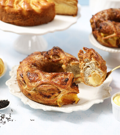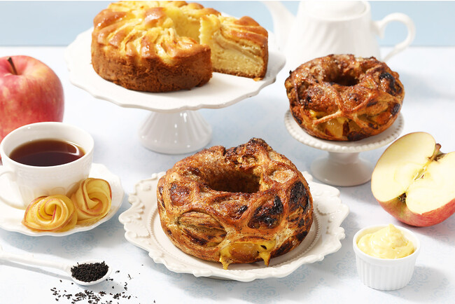 ・香り高いアールグレイを練り込んだ生地に、ジェノワーズ(スポンジ生地)、りんご、カスタードクリームを合わせたアフタヌーンティー気分をお楽しみいただける『季節のリング』です。