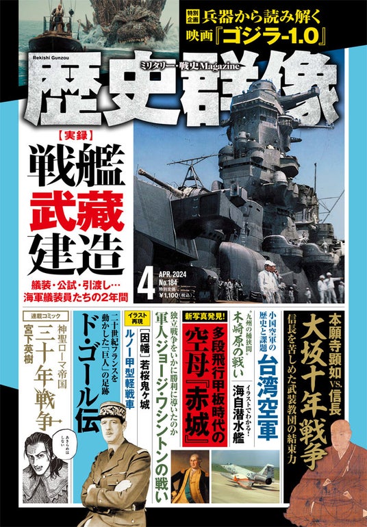 株式会社 ワン・パブリッシング(東京都港区/取締役社長:松井謙介)は『歴史群像4月号』を発売いたしました。本号では、実録・戦艦武藏建造、本願寺顕如vs.信長 大坂十年戦争、ド・ゴール伝の3本の特集記事を含め、歴史ファン、戦史ファンにぜひお読みいただきたい20本以上の記事を収録しています。