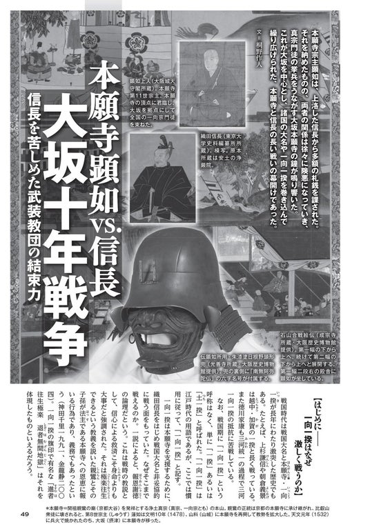 第二特集「本願寺顕如vs.信長 大坂十年戦争~信長を苦しめた武装教団の結束力」では、信長と、本願寺および一向一揆の苛烈な戦いの顛末をたどります。
