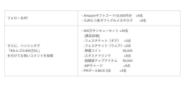 さらに、ハッシュタグ「#みんゴル900万DL」を付けてお祝いコメントを投稿いただいた応募者の中から抽選で豪華ゲーム内アイテムをプレゼントいたします。