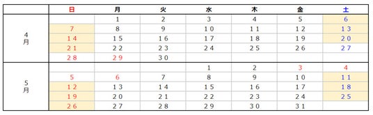 4月6日(土)・7日(日)・13日(土)・14日(日)・20日(土)・21日(日)