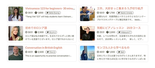 カフェトークのオンラインレッスン一覧:https://cafetalk.com/lessons/?lang=ja