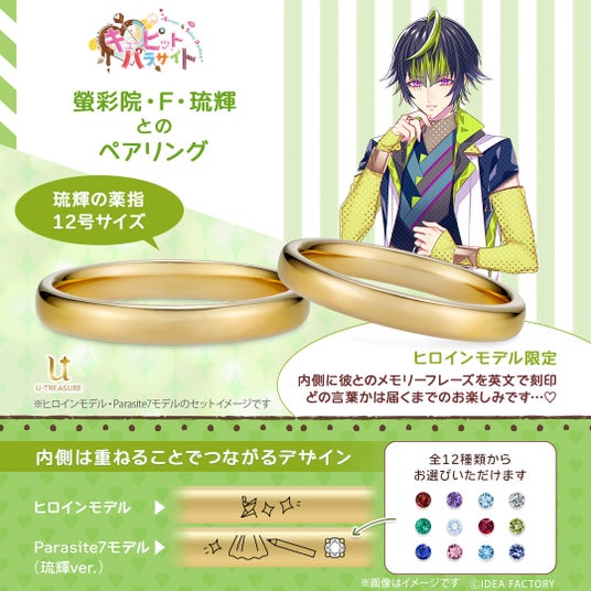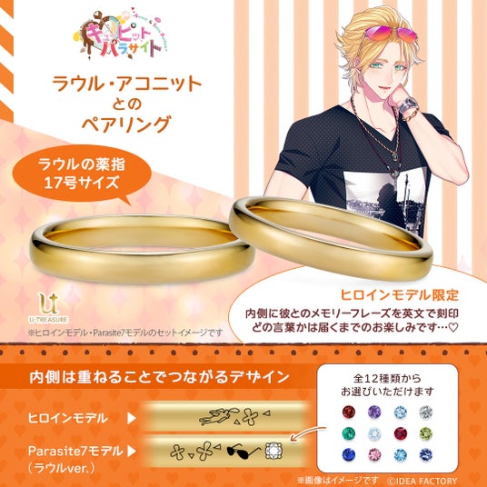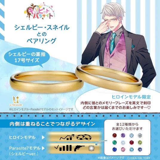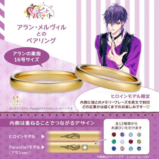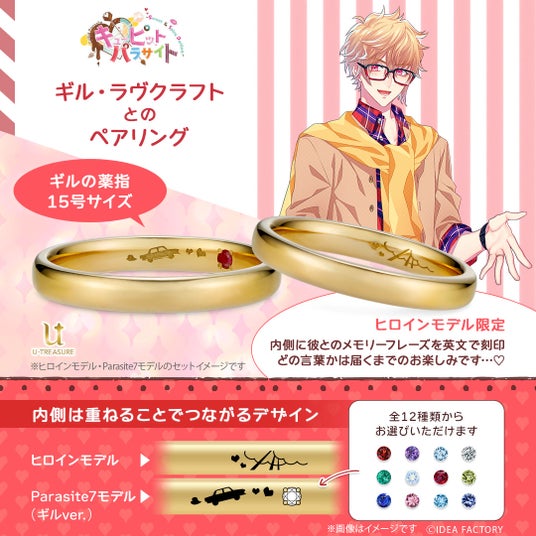 株式会社ユートレジャー(本社:東京都新宿区、代表取締役社長:青木 興一)は、アイディアファクトリー株式会社(本社:東京都豊島区、代表取締役:佐藤 嘉晃)が手掛ける女性向けゲームブランド「オトメイト」が贈る恋愛アドベンチャーゲーム「キューピット・パラサイト -Sweet & Spicy Darling.-」とのコラボレーションアイテム「彼とのペアリング」の予約受付を、2025年4月11日(金)~5月13日(火)の期間、ユートレジャーオンラインショップ、ユートレジャーコンセプトストア池袋にて行います。