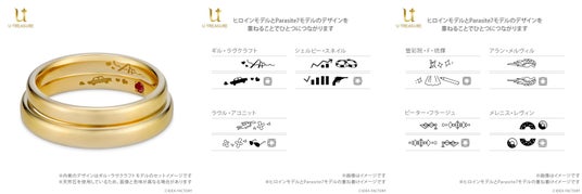 このたびの新作は、彼らとのペアリングを公式監修のもと商品化したリング(指輪)です。ヒロインモデルにはゲーム内で彼から伝えられた大切な言葉が“メモリーフレーズ”として英文で刻印されており、Parasaite7モデルと2本重ねることでひとつにつながるモチーフが完成するデザインです。