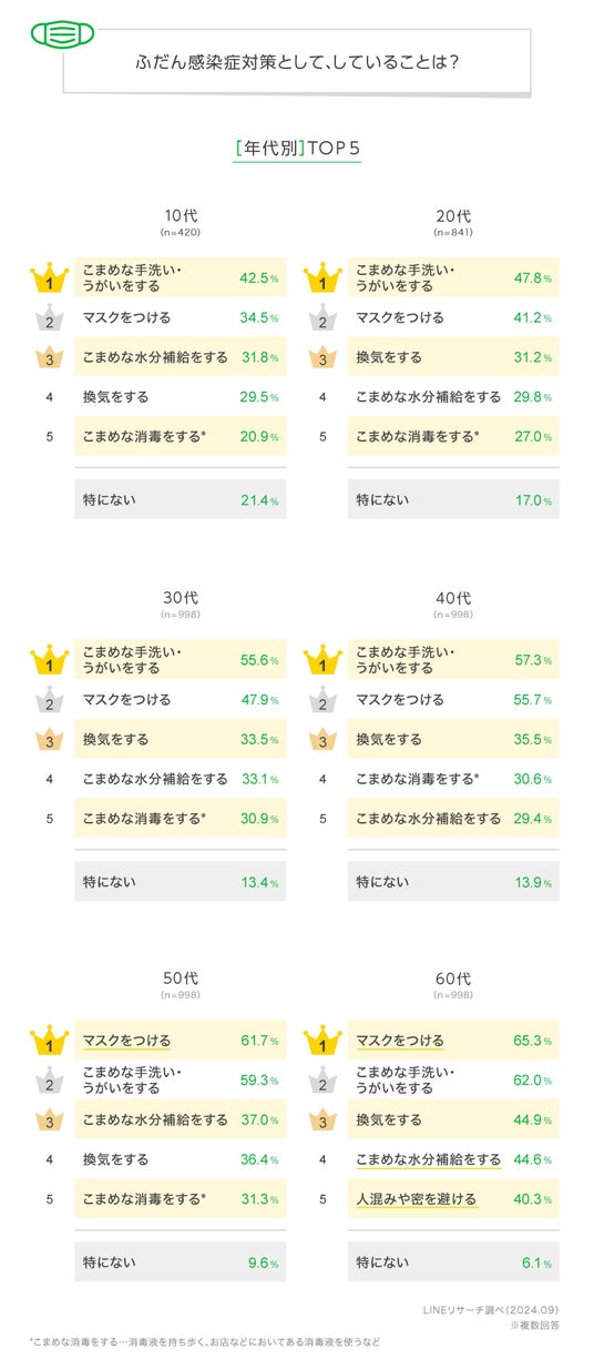 LINEリサーチ、全国の10~60代を対象に、感染症対策への意識に関する調査を実施