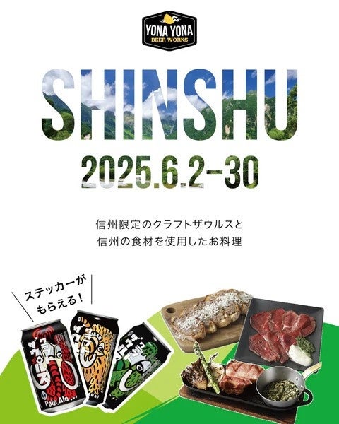 株式会社ワンダーテーブル[本社:東京都新宿区西新宿/代表取締役社長 河野 博明]は、よなよなエール公式ビアレストラン『よなよなビアワークス』にて、2025年6月2日(月)から6月30日(月)まで、信州の魅力的なクラフトビールと、ビールによく合うこだわりの食材を使用した限定フードメニューをご用意いたします。