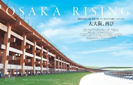 それからほぼ100年という歳月が流れた2025年4月、「2025年日本国際博覧会」(大阪・関西万博)がいよいよ開幕します。万博のシンボルである「大屋根リング」を中心に、個性的はパビリオンの幾つかと、万博を機に新たな動きを見せている大阪のグルメとホテルの情報を紹介。「大大阪」の輝きを再び取り戻そうとしている大阪に、足を運んでみませんか。