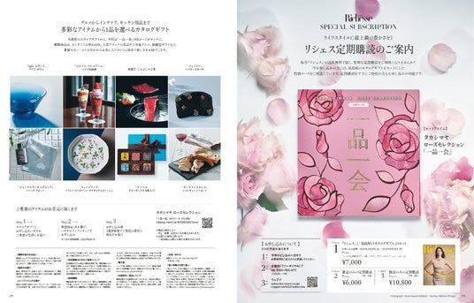 毎号スペシャルなアイテムをセットにして発売する『リシェス』の定期購読。今回は人気ブランドの名品やご当地グルメ、体験型ギフトなどえりすぐりの約440点の多彩なアイテムから1品を選べるカタログギフトとリシェスの定期購読(1年・4冊)がセットになった大変お得なコースです。