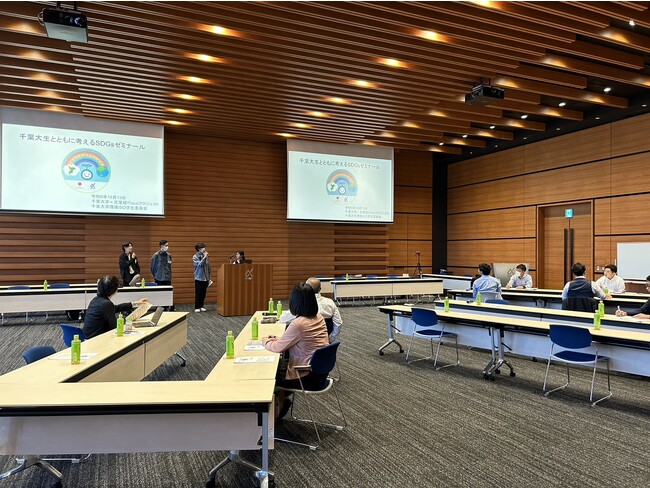 国立大学法人千葉大学の環境ISO学生委員会(以下、学生委員会)と株式会社京葉銀行(以下、京葉銀行)は、2017年度より協同でecoプロジェクトを実施しており、SDGs達成に向けた取り組みを行っています。10月13日(金)に学生委員会がSDGsや環境対策に関する企業の取り組み事例などについて講演する「SDGsゼミナール」を開催しました。
