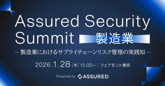 株式会社アシュアード(本社:東京都渋谷区、代表取締役社長:大森 厚志)が運営する、セキュリティの信用評価プラットフォーム「Assured(アシュアード)」は、2026年1月28日(水)、従業員数1,000名以上の製造業におけるセキュリティ責任者・リーダー層を対象としたカンファレンス「Assured Security Summit for 製造業」を開催することをお知らせします。