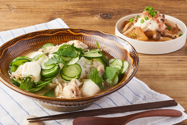 商品説明:さらっとしたのどごしの、山椒が効いた冷や汁。2つの調味料を合わせて完成です。チキン南蛮風の甘酢だれで食べる副菜とともに、宮崎の味を体感できます。