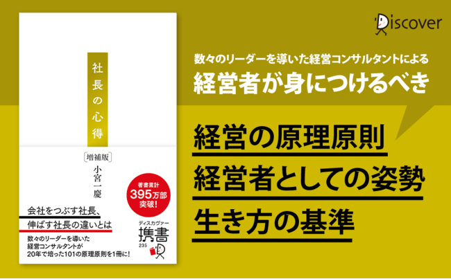 株式会社ディスカヴァー・トゥエンティワン(本社:東京都千代田区、取締役社長:谷口奈緒美)は2022年1月28日に『社長の心得 増補版』(小宮一慶・著)を刊行します。
