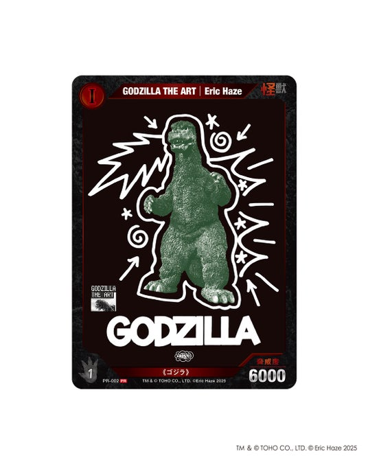 数量限定で来場者にプレゼントとなるゴジラの新作カードゲーム「ゴジラ カードゲーム」のPRカードのデザインを公開。エリック・ヘイズによる今回のためのオリジナルデザインです。