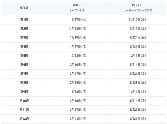 2025年1月7日(火)オープン~3月28日(金)ニューヨーククローズ