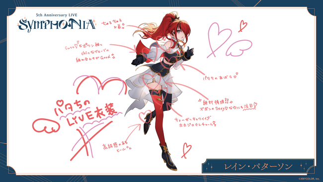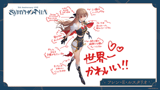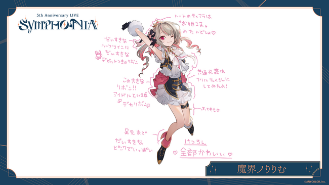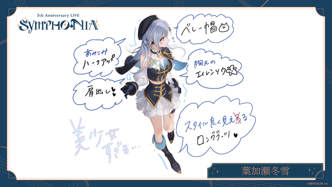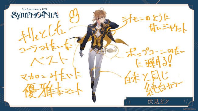 ANYCOLOR株式会社(本社:東京都港区 代表取締役:田角陸、以下「当社」)が運営するVTuber / バーチャルライバーグループ「にじさんじ」 は、2023年12月23日(土) に開催が迫る『にじさんじ 5th Anniversary LIVE 「SYMPHONIA」』Day1に出演するライバー8名からの衣装コメントを公開いたします。
