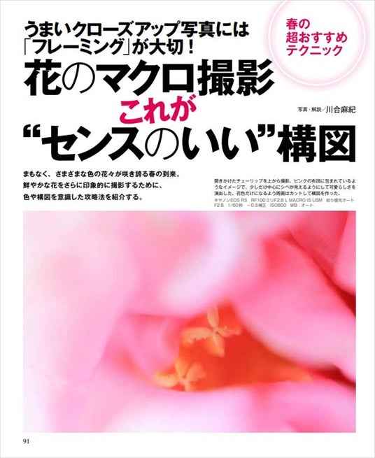 さまざまな花が咲き誇る春が本格到来。彩り豊かで鮮やかな花々をさらに印象的に写すには、マクロレンズによるクローズアップが欠かせません。ここでは接写による色や構図を意識したフレーミングの攻略法を紹介します。解説は写真家の川合麻紀さんです。
