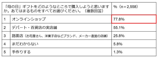 ~“スイーツ”が母の日ギフト10年連続で人気トップに。購入予算も増加傾向。~