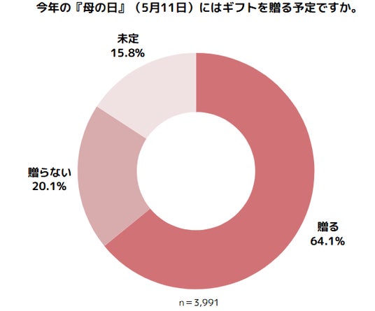 「今年の『母の日』(5月11日)にはギフトを贈る予定ですか。」という質問に対し、6割以上の方が贈る予定と回答しました。
